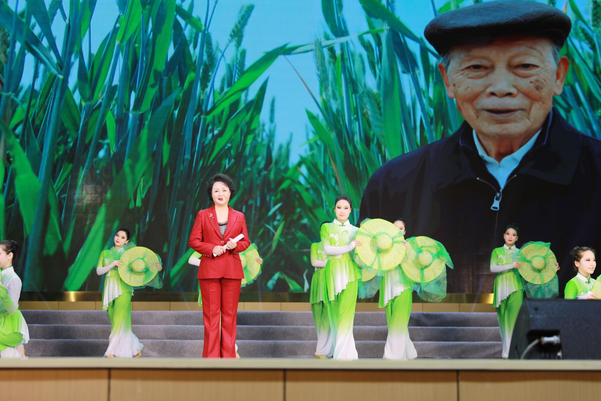 演出在开场舞《希望的田野》中拉开帷幕,舞姿翩跹,将观众带入那片承载着汗水与希望的广袤沃土。随后,歌伴舞《生命的感动》、情景剧《种子》、男声独唱《一把种子一斗粮》等节目,深情讲述了梁增基先生数十年如一日,坚守初心、勇担使命,为培育优质高产小麦品种呕心沥血的感人事迹。陕西快书《要吃粮,找老梁》和秦腔小戏《黄土地上育种人》,用浓郁的秦风秦韵,生动诠释了“把论文写在大地上”的实干精神与科学家情怀。舞蹈《好收成》、歌伴舞《中国的碗自己端》,以昂扬的旋律和充满力量的表演,传递了梁增基先生扎根基层、科技报国的时代强音。演出在全场齐声高唱的《我和我的祖国》中圆满落下帷幕,激昂的歌声回荡在现场,激荡着每一位师生的爱国心与报国情。
