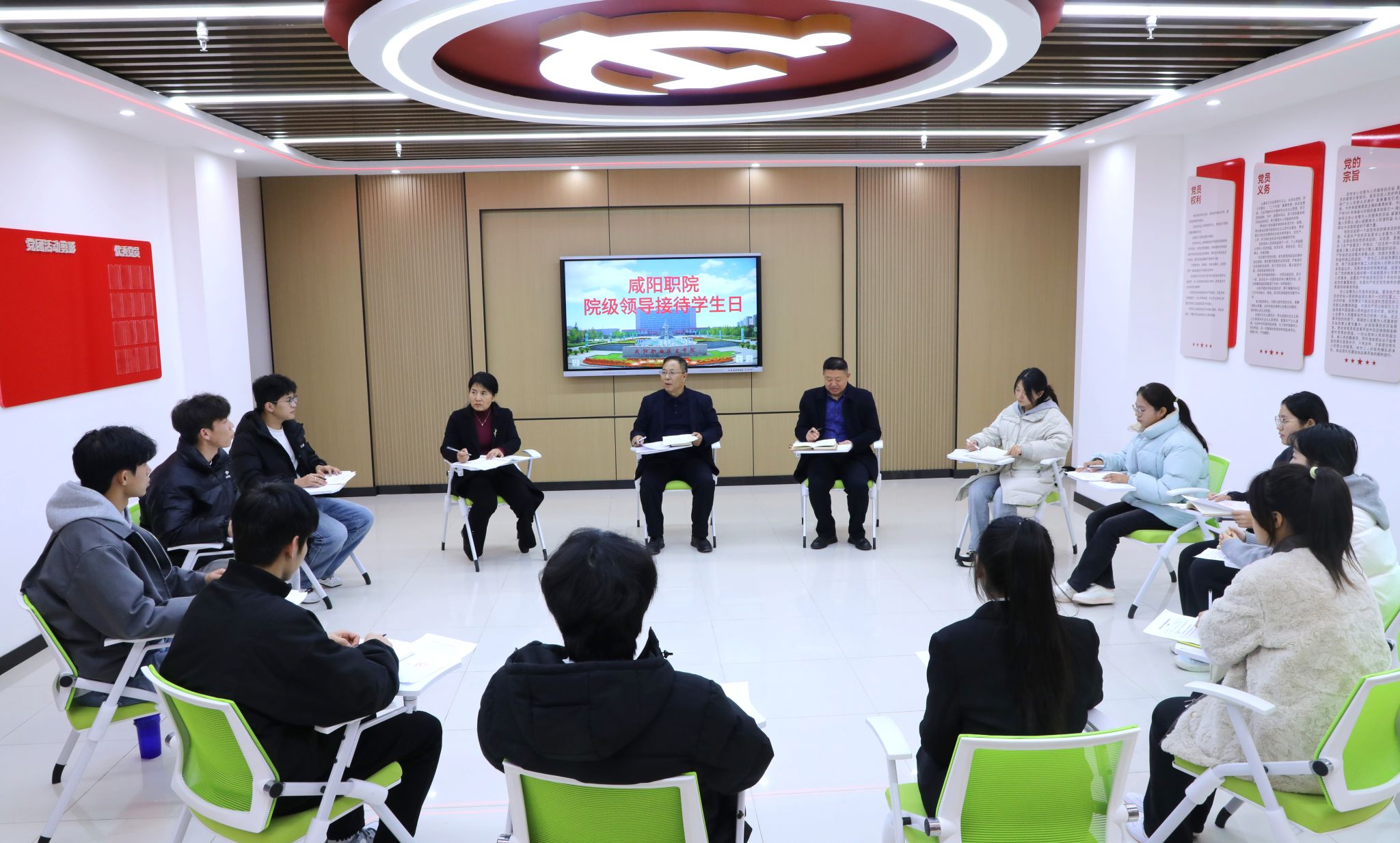 11月25日,学院党委副书记赵维在咸阳职院“一站式”学生社区学生党团活动中心与来自各二级学院的11名学生代表面对面交流,倾听学生心声,现场回应学生关切。