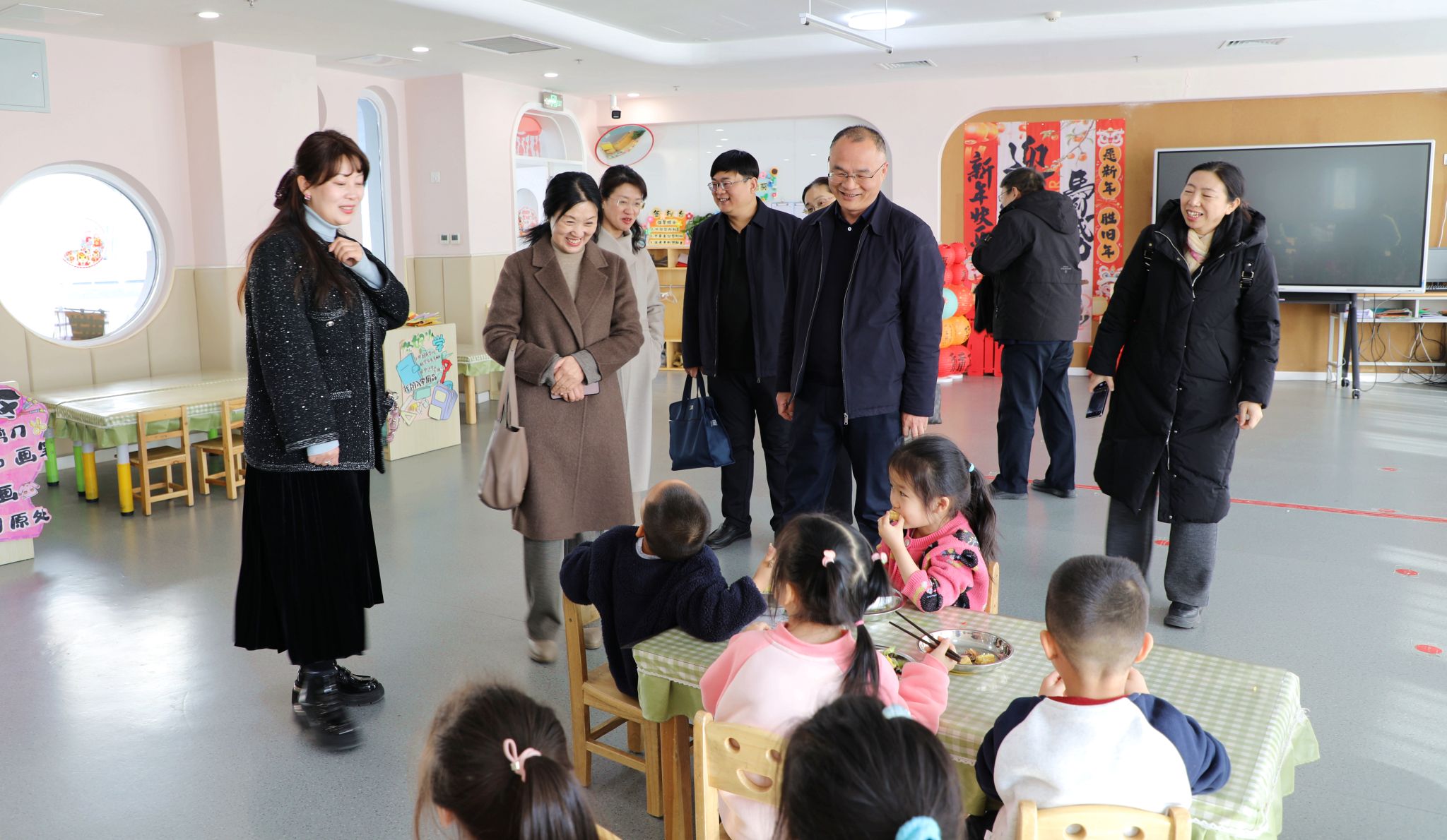 座谈结束后,来宾一行先后参观了学院体育馆、游泳馆及婴幼儿教育实践中心。参观过程中,现场工作人员详细介绍了各场馆的功能特色与教学实践成果,来宾对学院的硬件设施和育人环境给予高度评价。