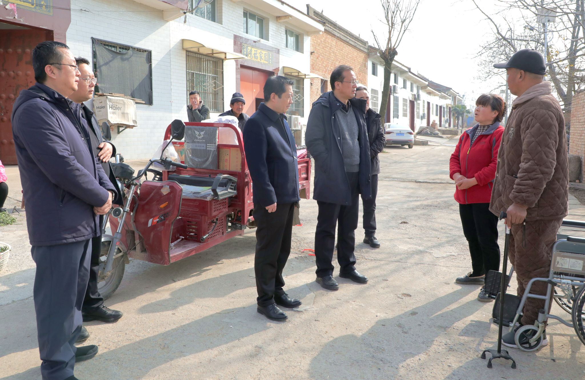 座谈会后,杨卫军一行与镇村有关负责人集中为老党员、结对帮扶的困难群众等发放了米、油、洗衣液等慰问物资。并专程来到突发疾病的原村委会主任吴金龙家中,详细询问其病情与治疗进展,鼓励他坚定信心、积极康复并送上慰问金,叮嘱驻村干部持续做好关心帮扶。